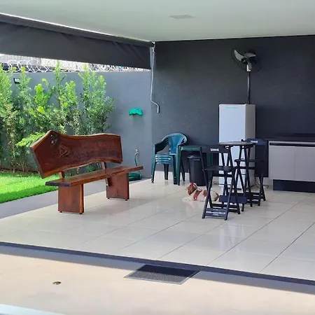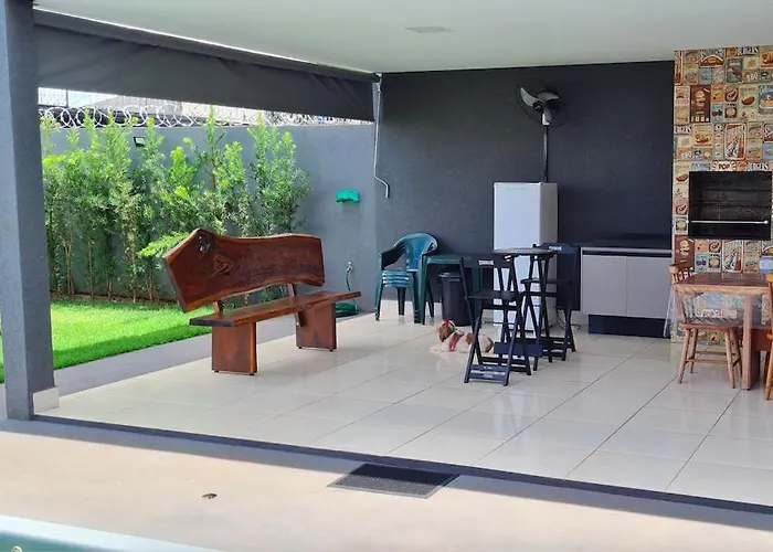 A fully equipped kitchen has kitchenware to offer. The closest airport is Prof. Eribelto Manoel Reino State, which is 85 km from the 3-bedroom Rancho Farol Do Rio Grande Villa.